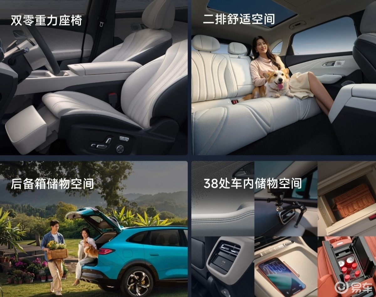 车内设有38处储物空间,满足随身物品、儿童用品、车载设备等高频收纳需求,后备厢常规容积573L,放倒后排可拓展至1597L,婴儿车、行李箱、露营装备等均可从容装载,覆盖城市通勤、周末出游、长途返乡等全场景使用。