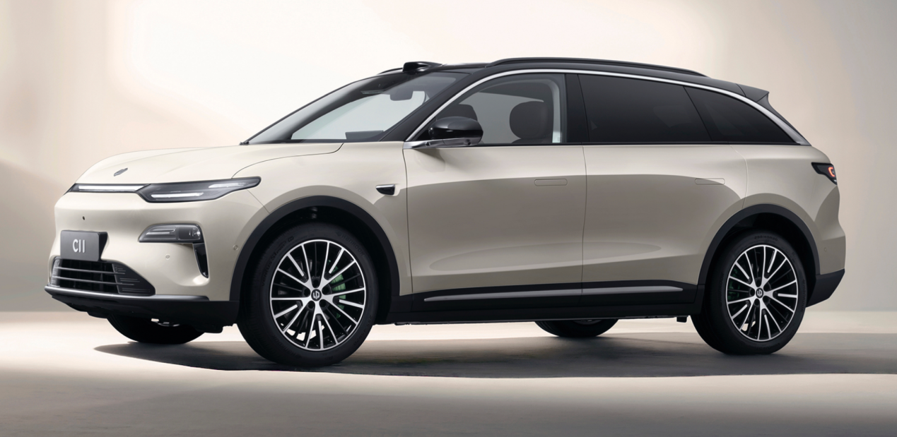 零跑 C11 采用圆润饱满的型面设计,搭配分体式头灯与贯穿式尾灯,线条柔和舒展,整体传递出稳重、居家的实用气质,契合传统家庭用户对 SUV 的经典审美期待。
